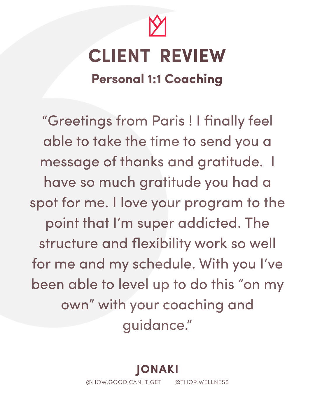 • Monthly private coaching calls