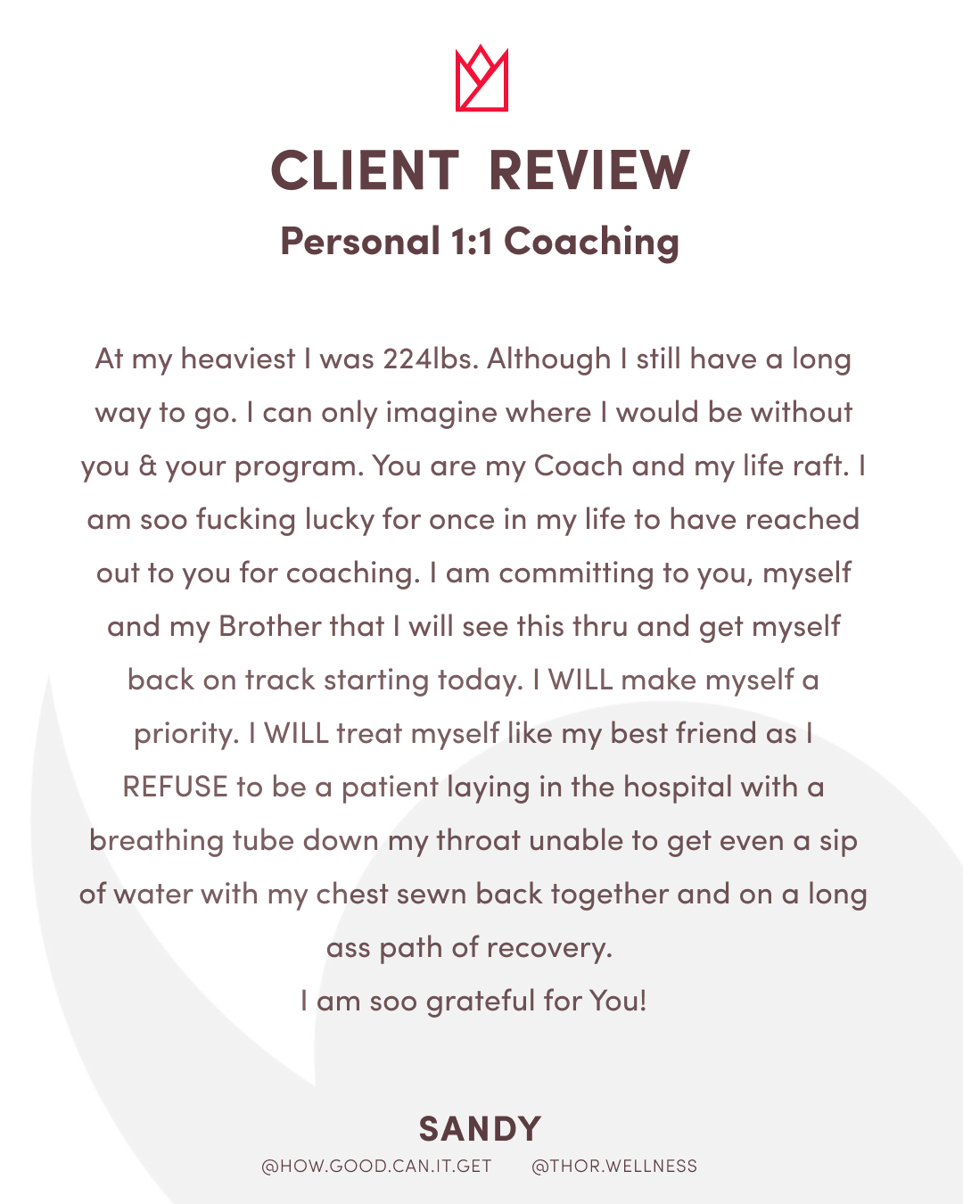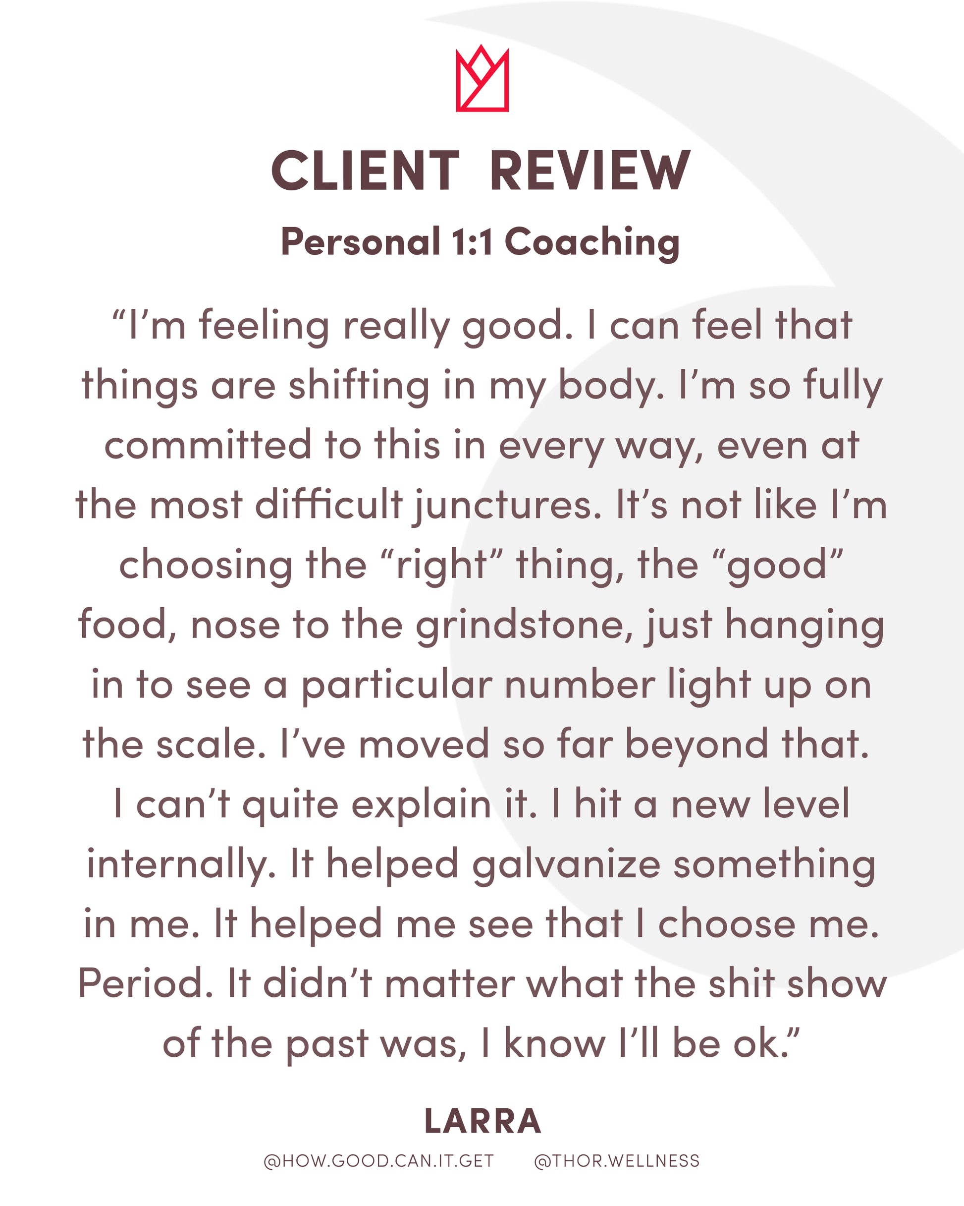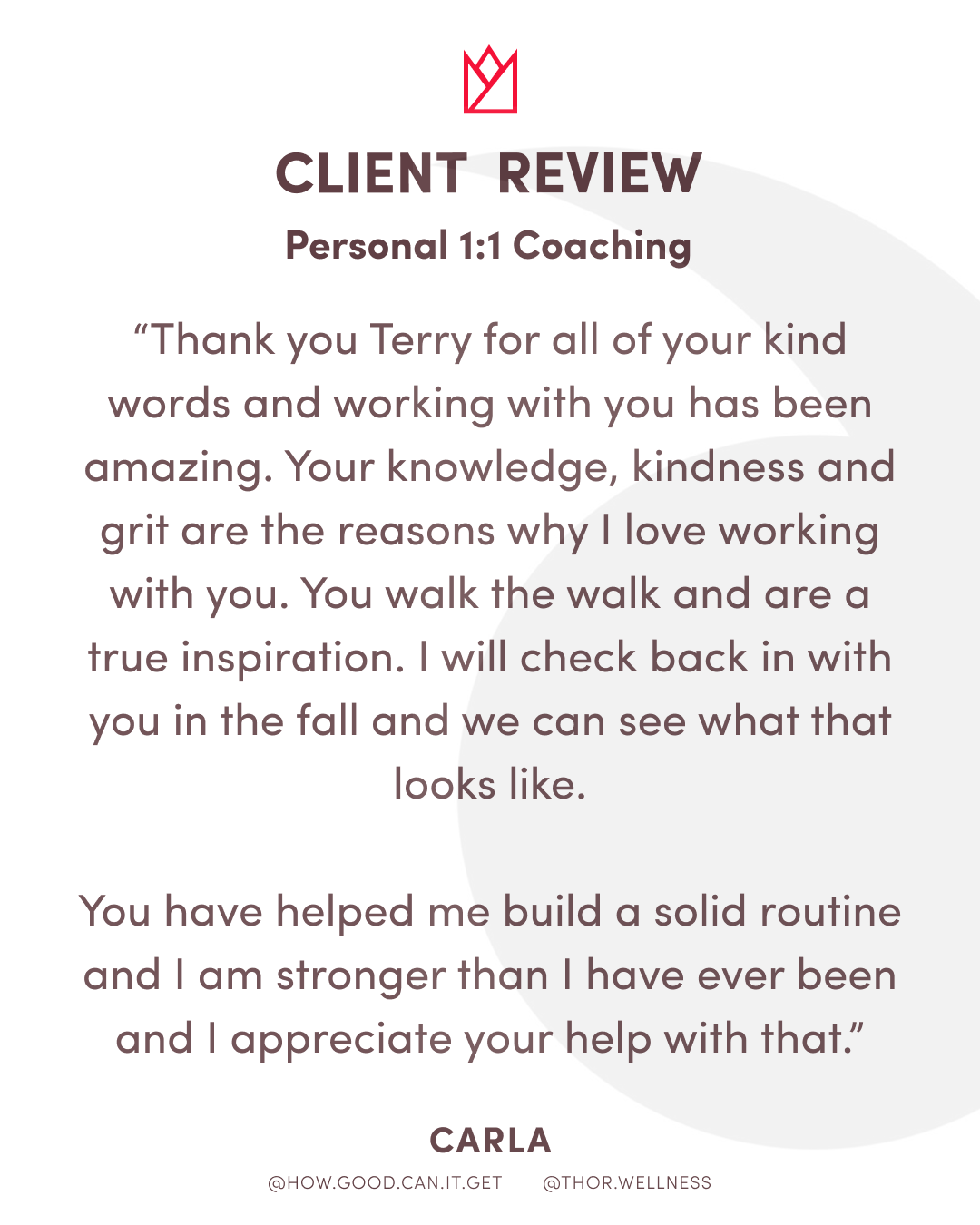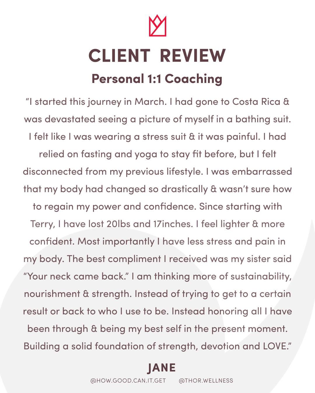 Over the course of 16 weeks, you’ll receive personalized guidance, accountability, and coaching to help you build sustainable habits that support long-term strength and well-being.